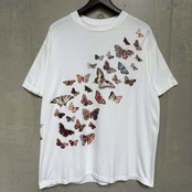 多種多様な蝶々が羽ばたくプリントTee。