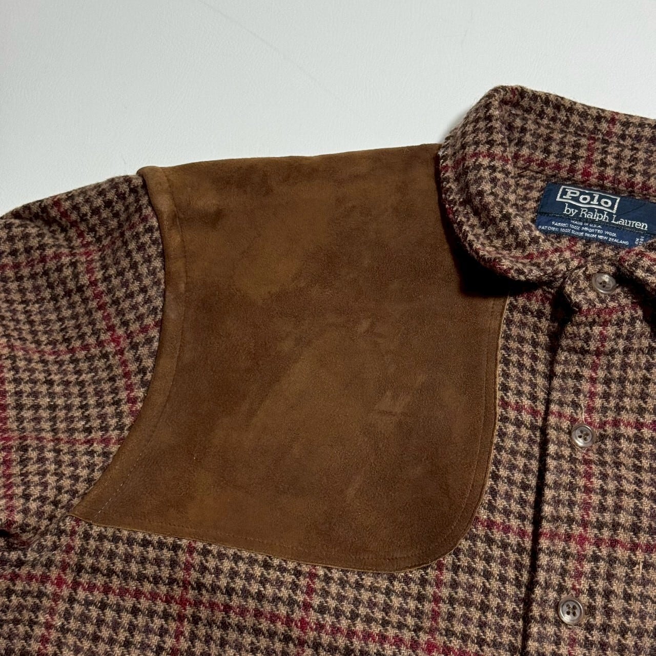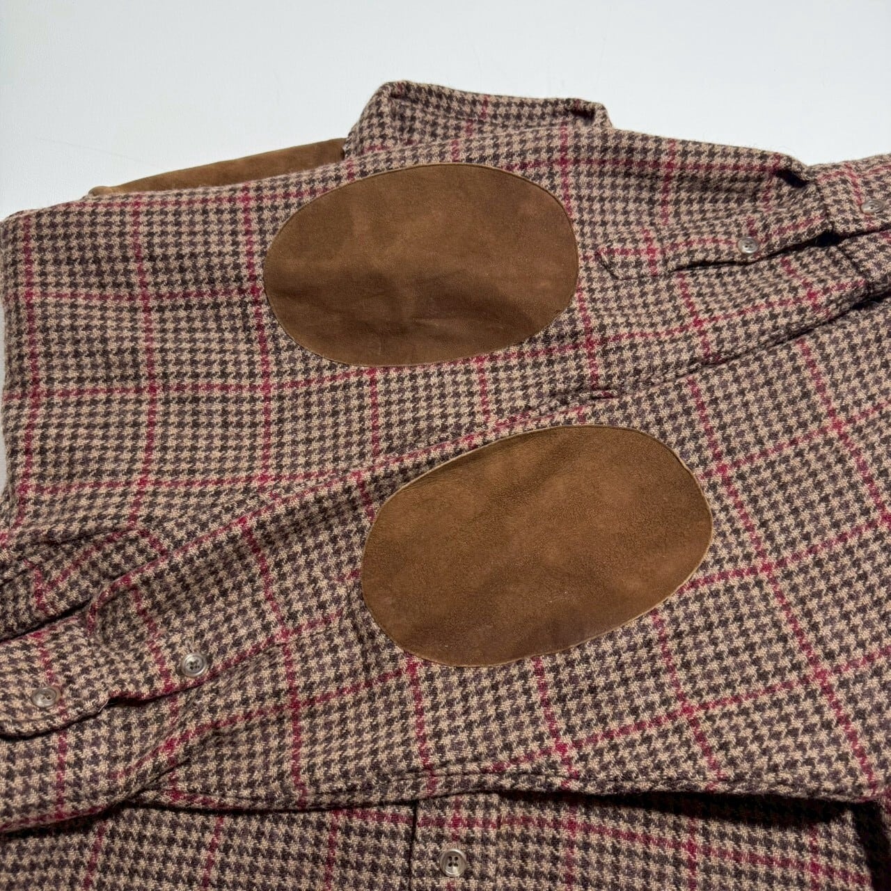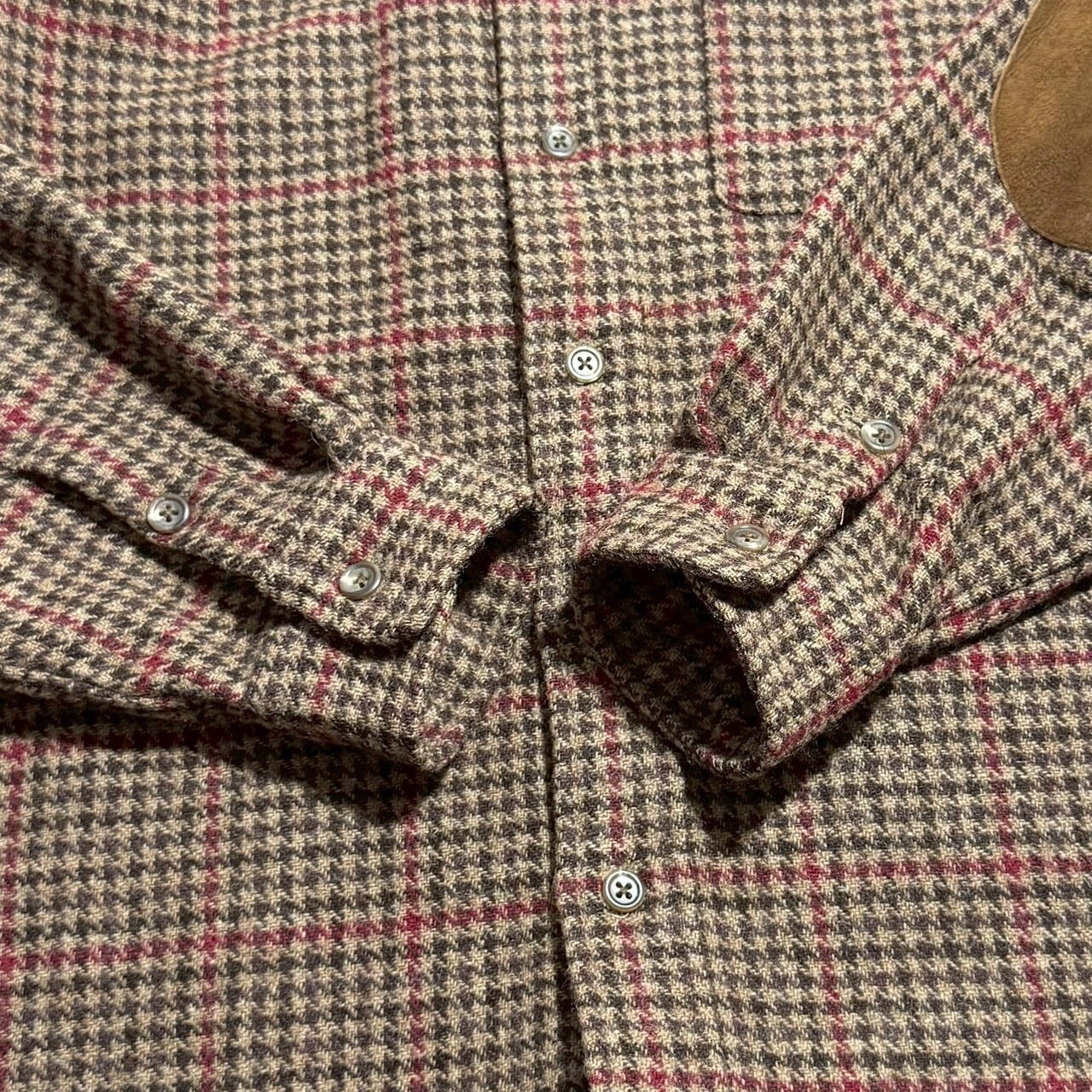 ハンドトゥース柄にスウェード地でガンパッチ、エルボーパッチも付きます。