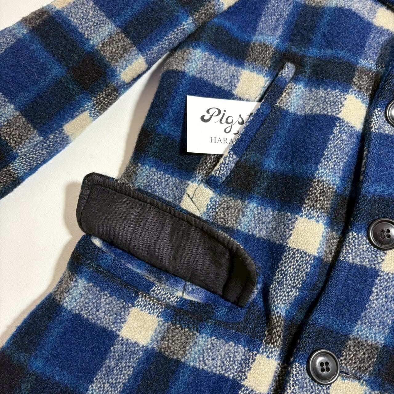 古いピーコートだと赤べースのチェックが多い中、