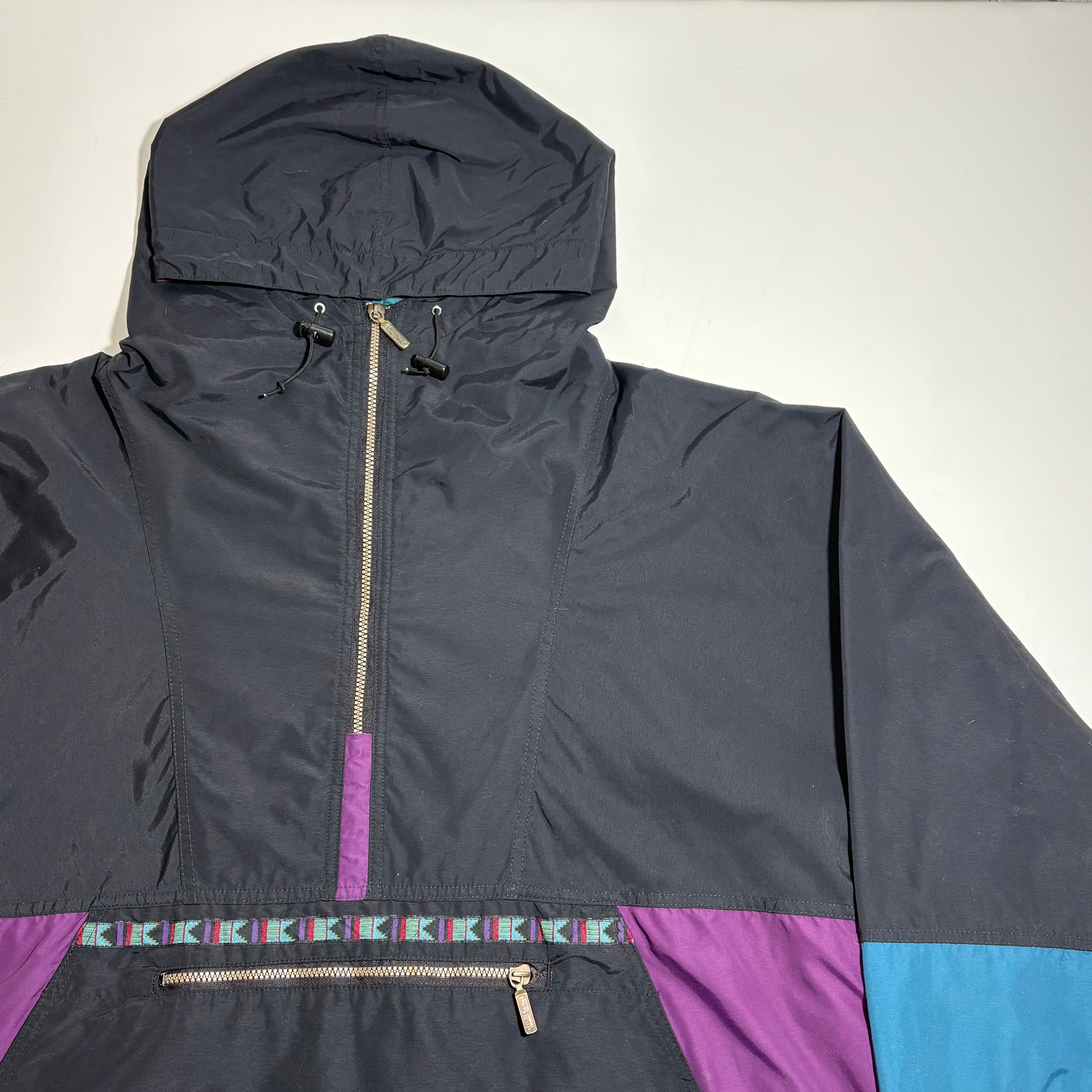 チロリアンテープが目を引くナイロンアノラック。