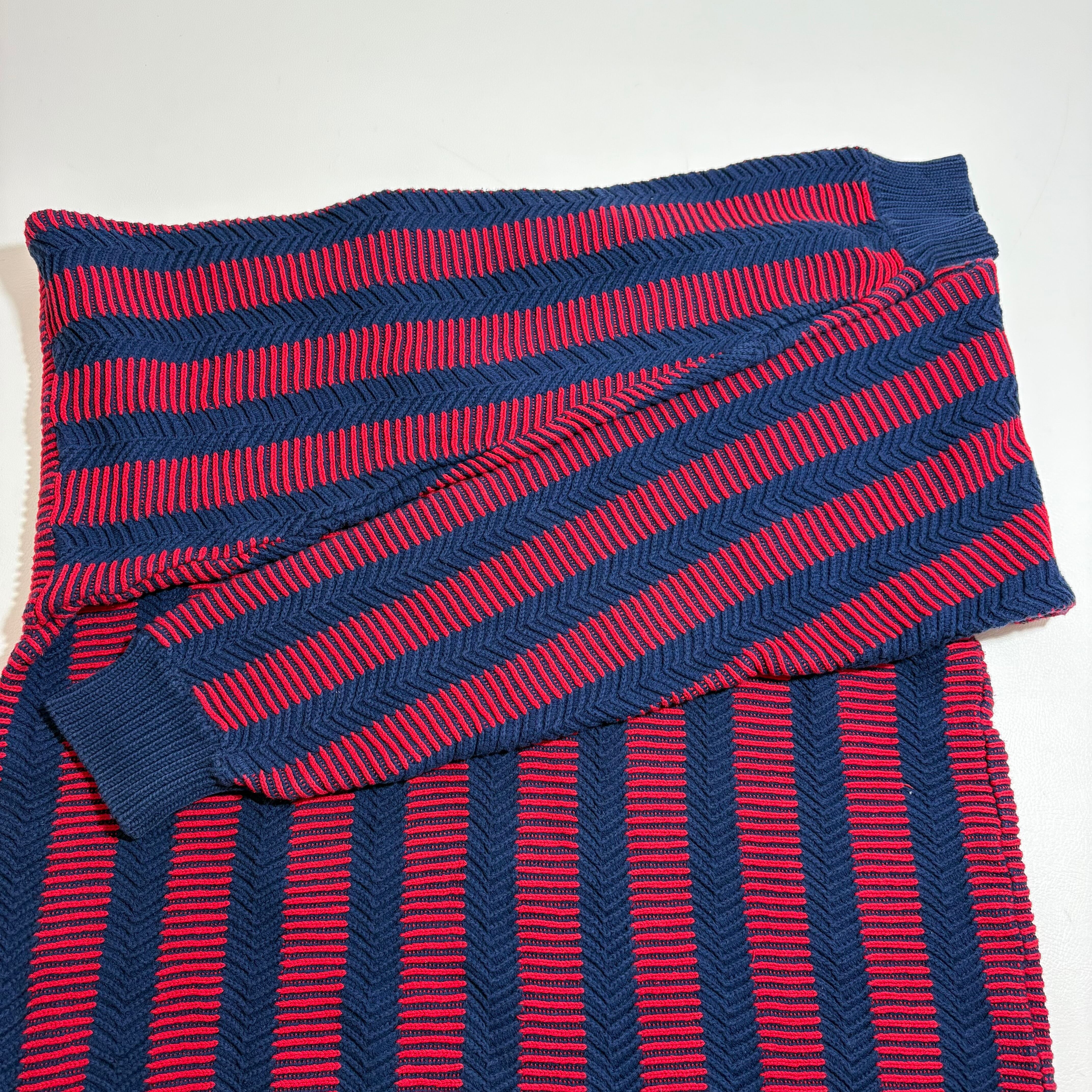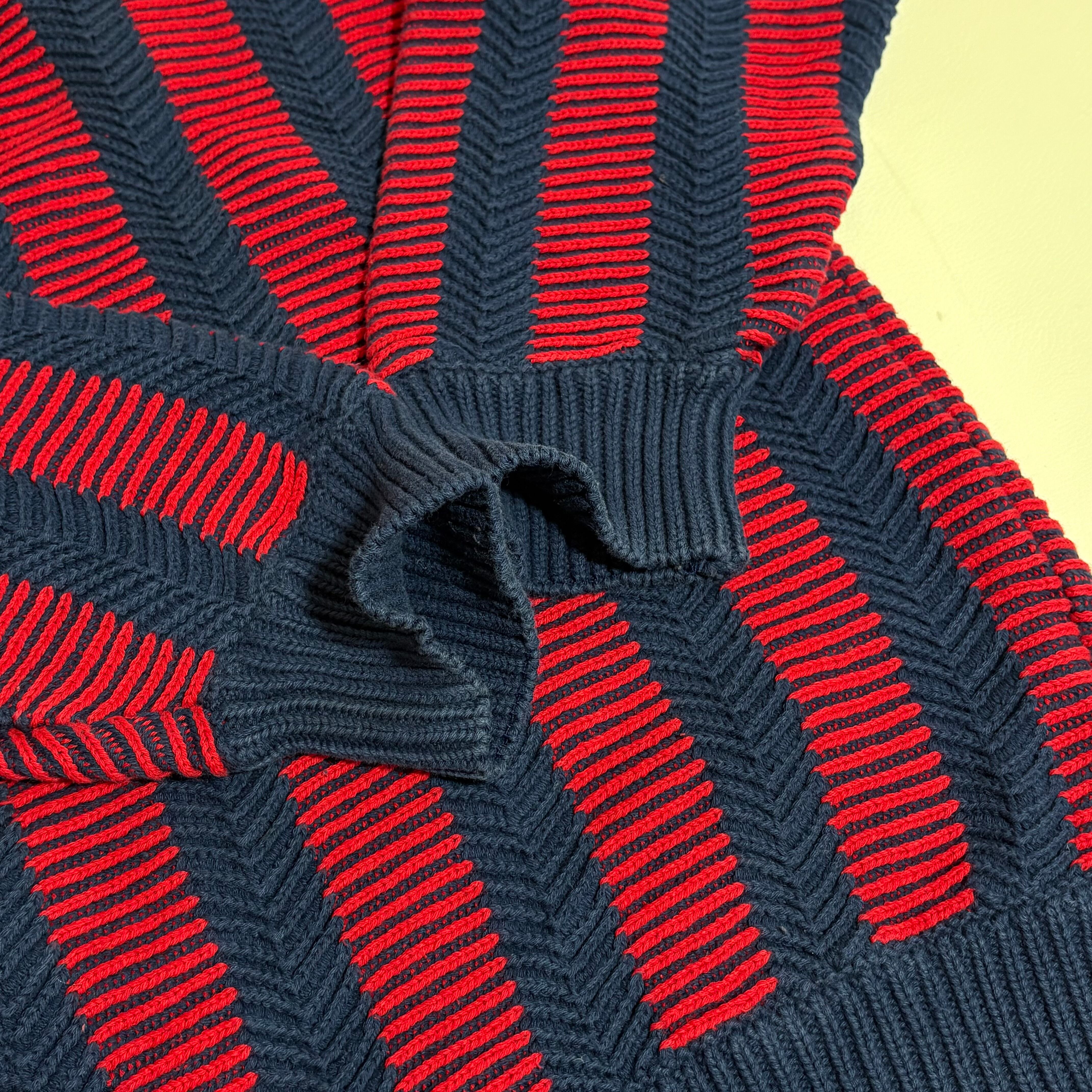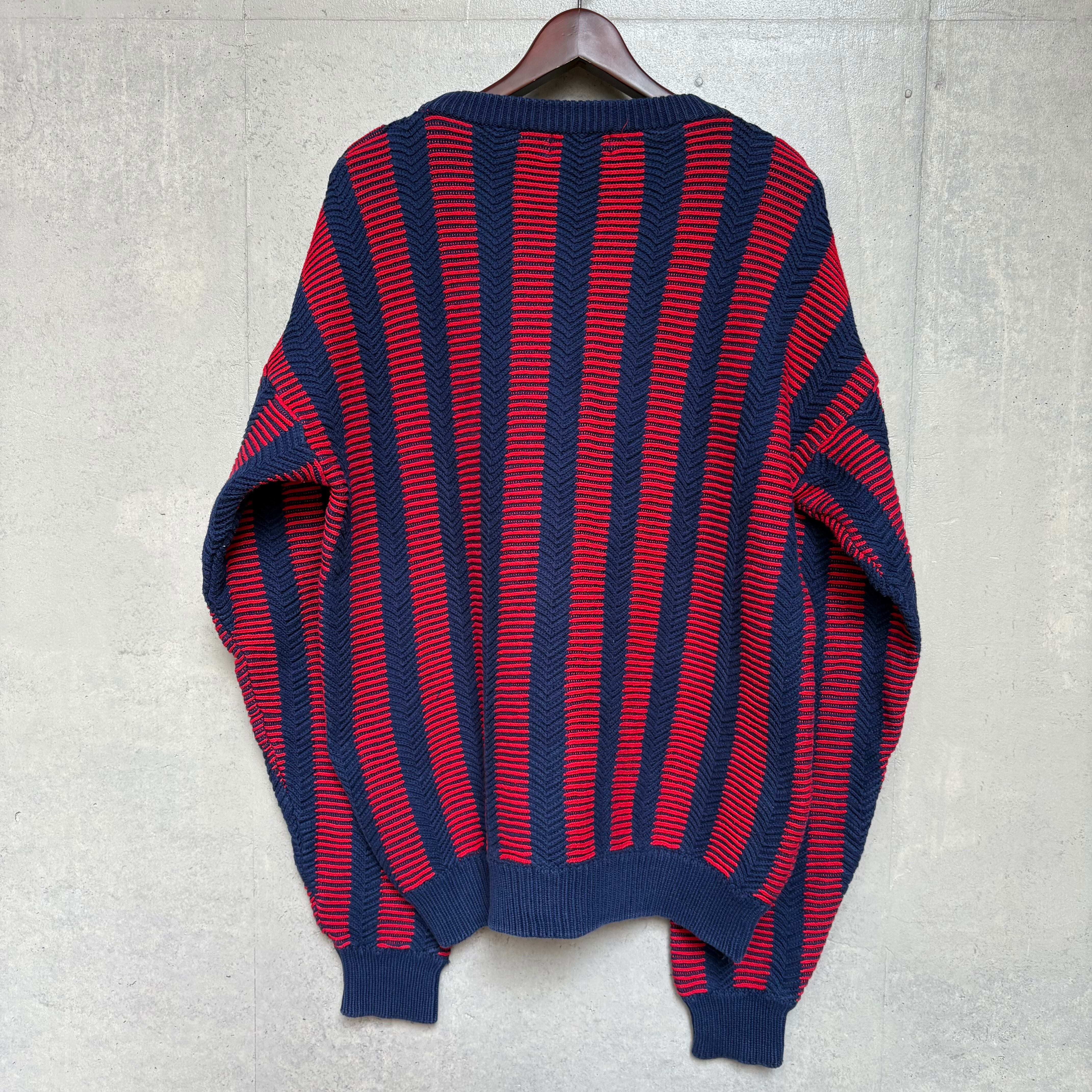 大胆なカラーリングに独特な編み方のコットンニット
