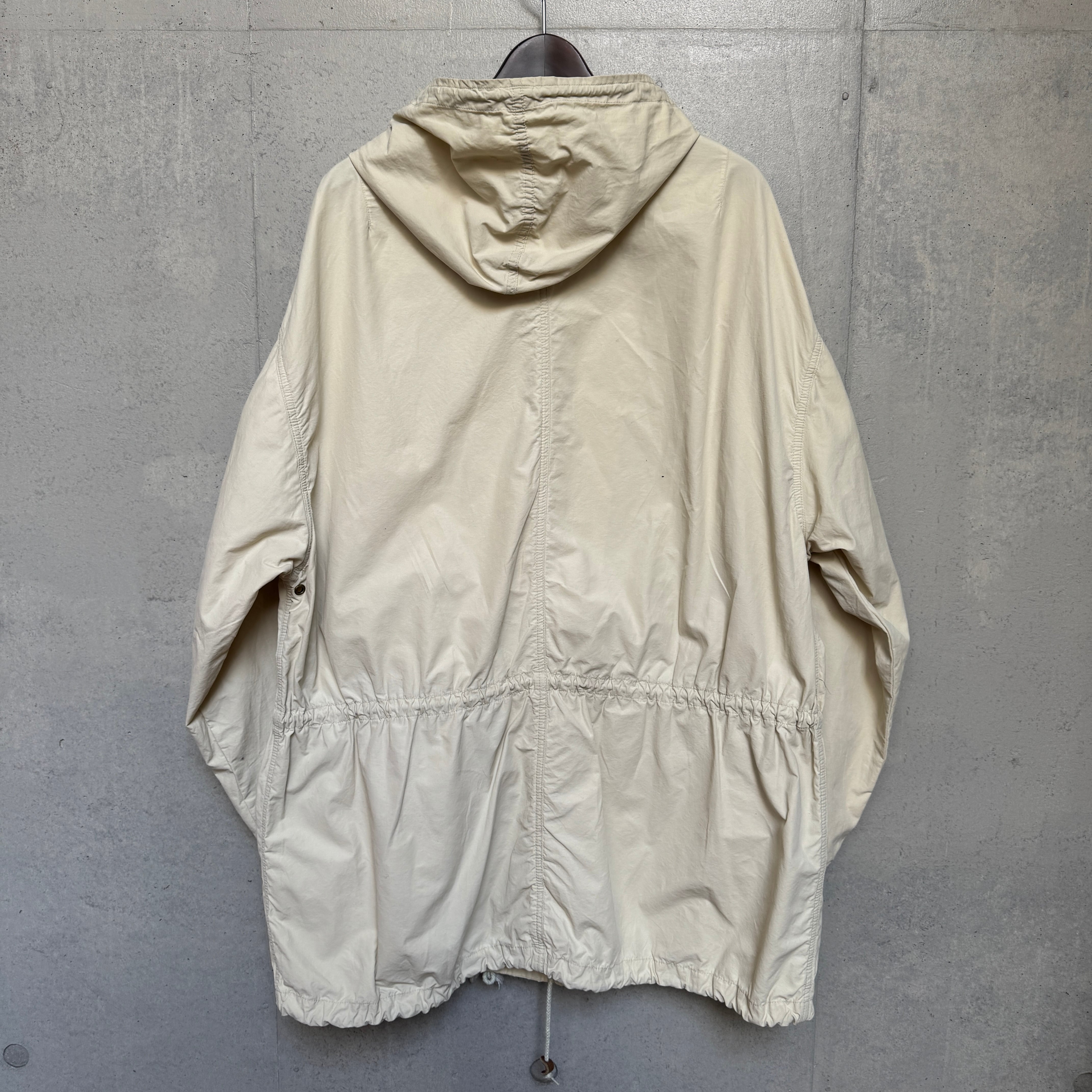 シャリ感のある生地で作られたフーディーコート。