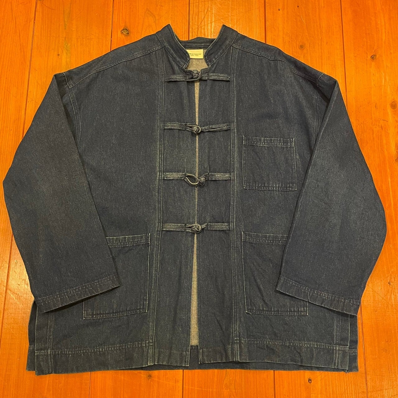 地厚なデニムを使用したチャイナジャケット。