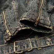 デニム地のライダースジャケット。