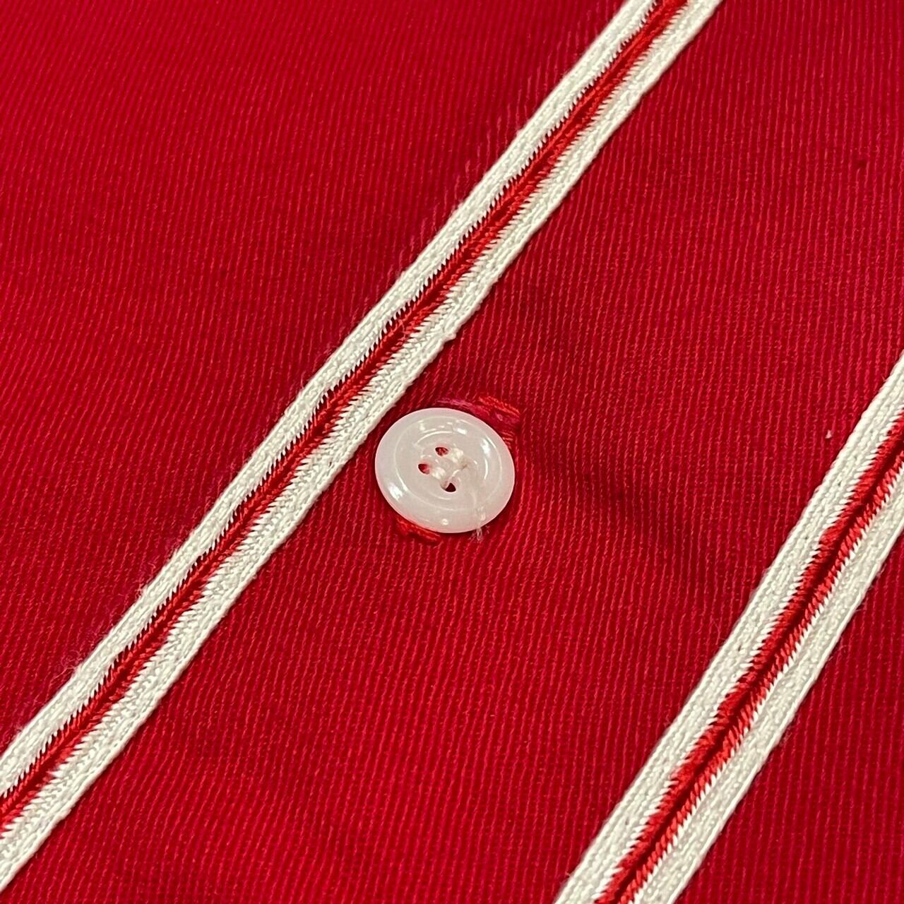 パキッとしたレッドカラーにフロントとバックに入るフェルトワッペン、