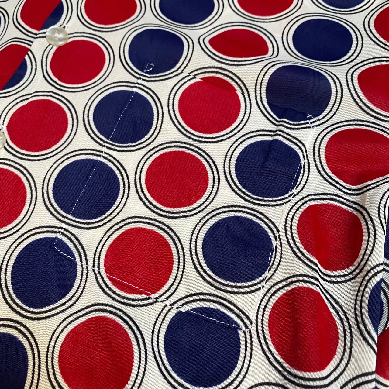 赤と青の大判なリングドットのプリントが良いですね。